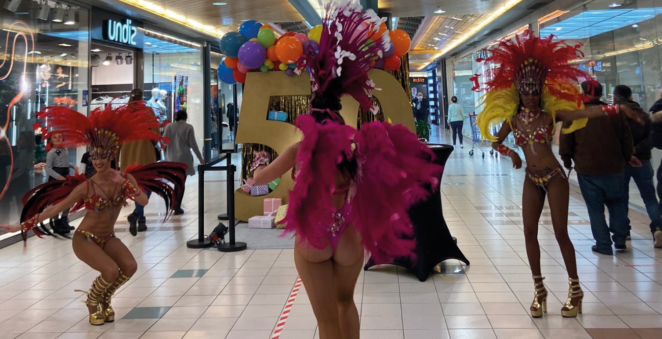 Pour fêter ses 50 ans, le centre commercial a créé son événement anniversaire avec l’aide de l’agence Tout Com. Pour cela, plusieurs animations ont été mises en place : parade de brésiliennes dans tout le centre, réalisation de deux box à selfies géantes, création d’un plateau TV et d’un Quizz avec Julien Lepers. De plus, l’agence a créé un Mosaïc Wall avec plus de 2800 photos de clients ainsi qu’un gâteau d’anniversaire géant de 460 parts ! Les plus petits n’ont pas été oubliés avec un espace DIY de chapeaux et un espace maquillage sur le thème d’halloween.