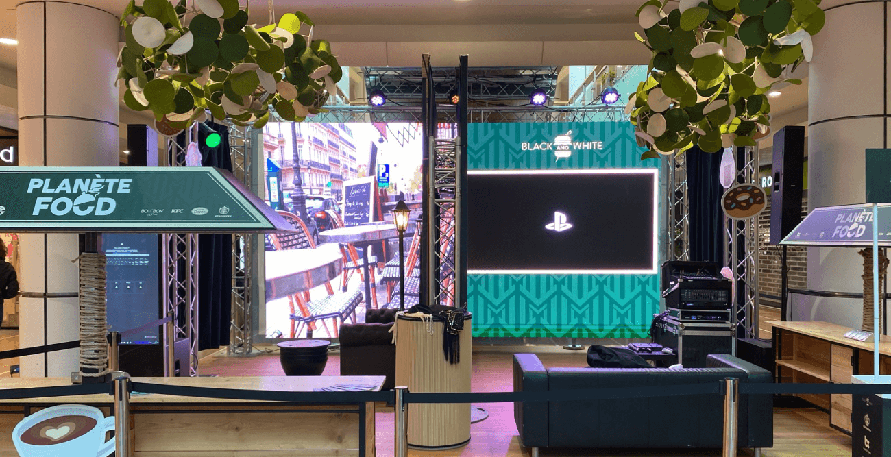 Installation d’un écran géant 6x2m, d’une structure trust et d’un éclairage LED.