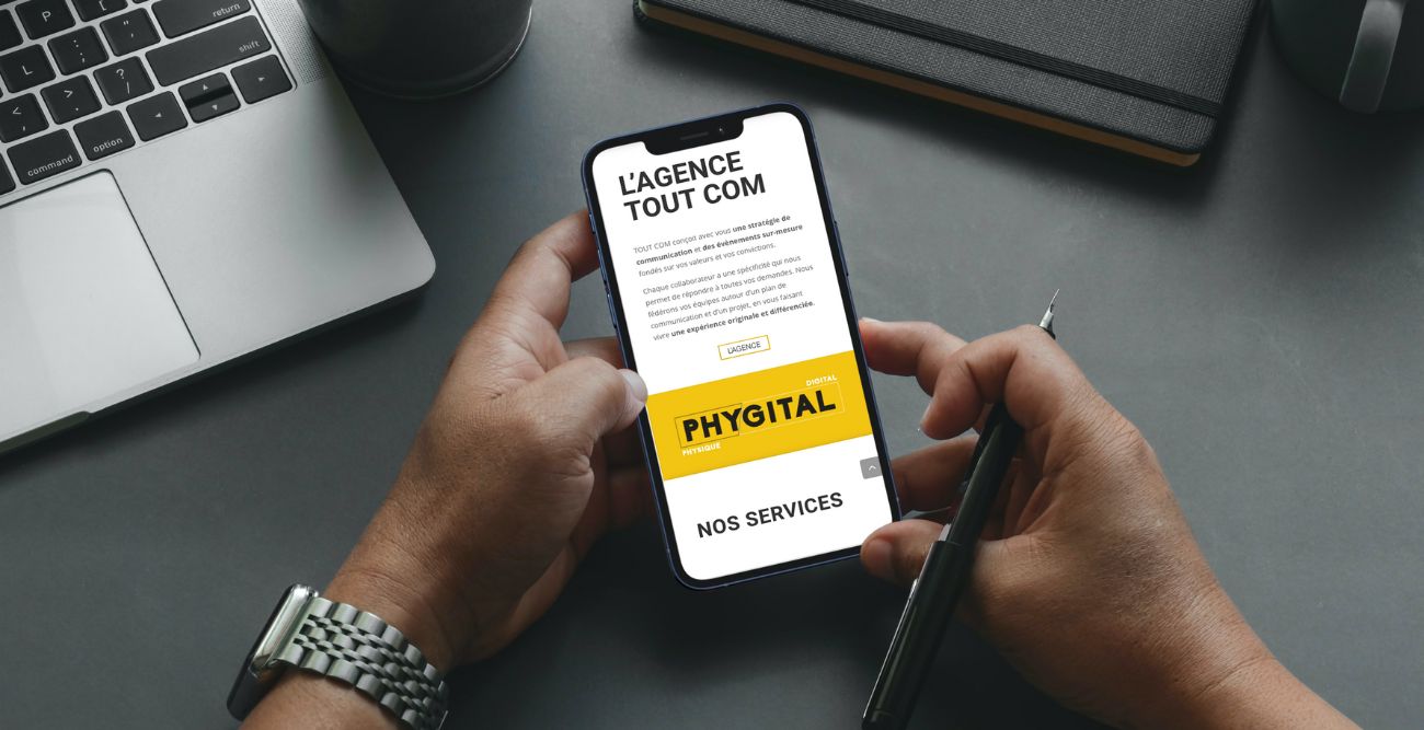 Téléphone dans laquelle on aperçoit l'agence Tout Com