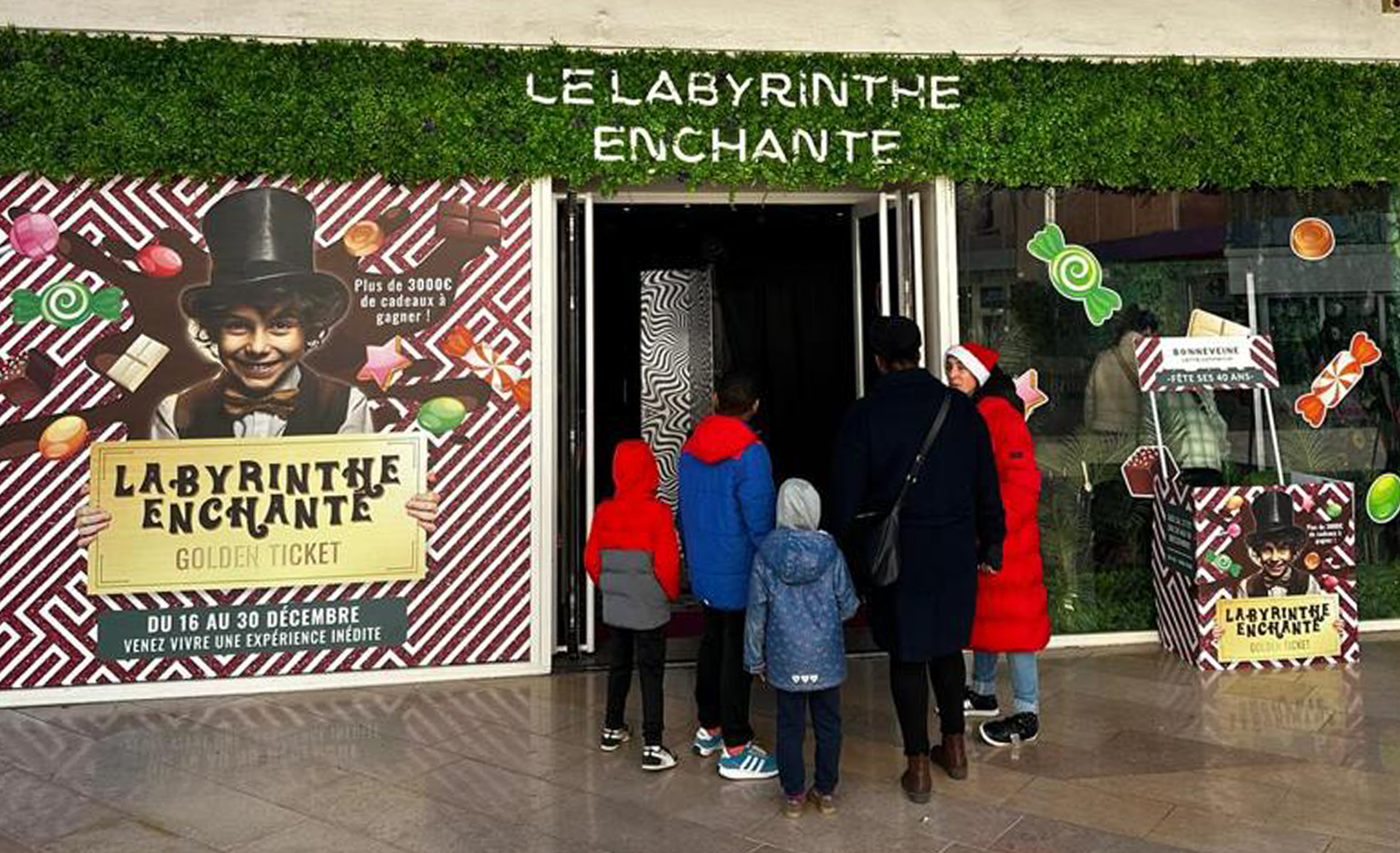 Vous avez envie de vous évader ? Venez explorer notre labyrinthe géant installé dans une cellule vacante d’un centre commercial ! Vous y découvrirez un univers fantastique inspiré du célèbre roman Charlie et la chocolaterie. Seuls les plus malins et les plus courageux pourront atteindre la sortie en résolvant toutes les énigmes et gagner un de nos fabuleux prix.