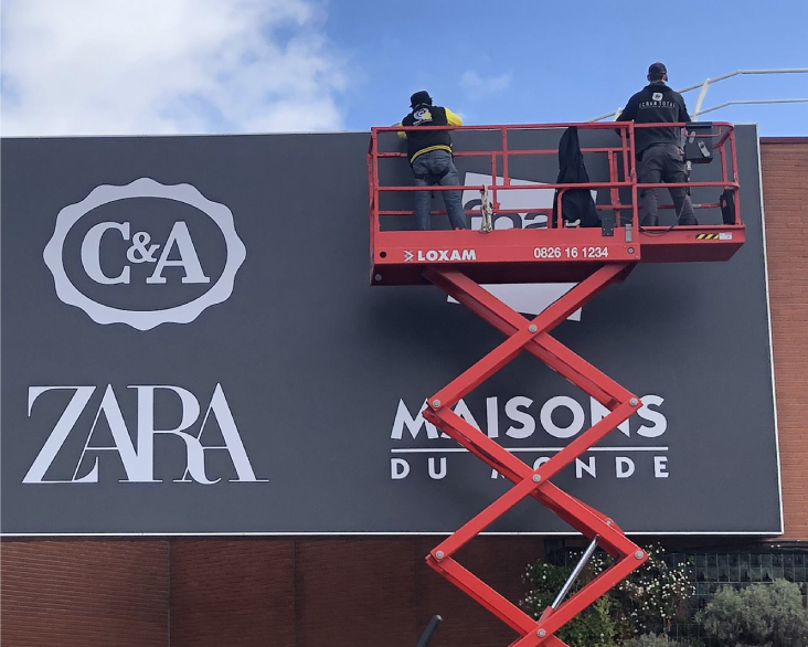 Une multitude d’outils peuvent être mis en place afin de réaliser ce type de communication : adhésifs, kakémonos, panneaux d’affichage, panneaux directionnels, panneaux publicitaires, marquage de véhicule et de concerts…